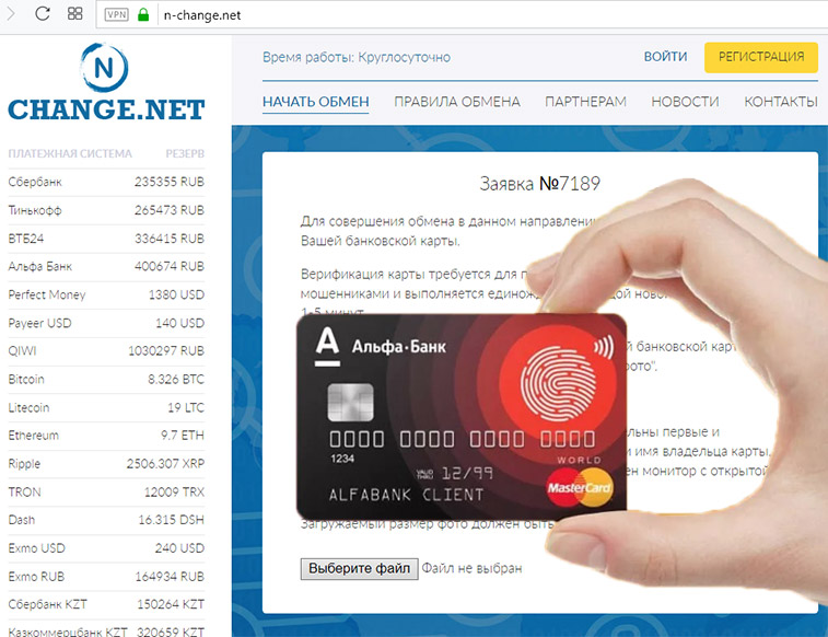 Для совершения обмена в данном направлении требуется верификация Вашей банковской карты.